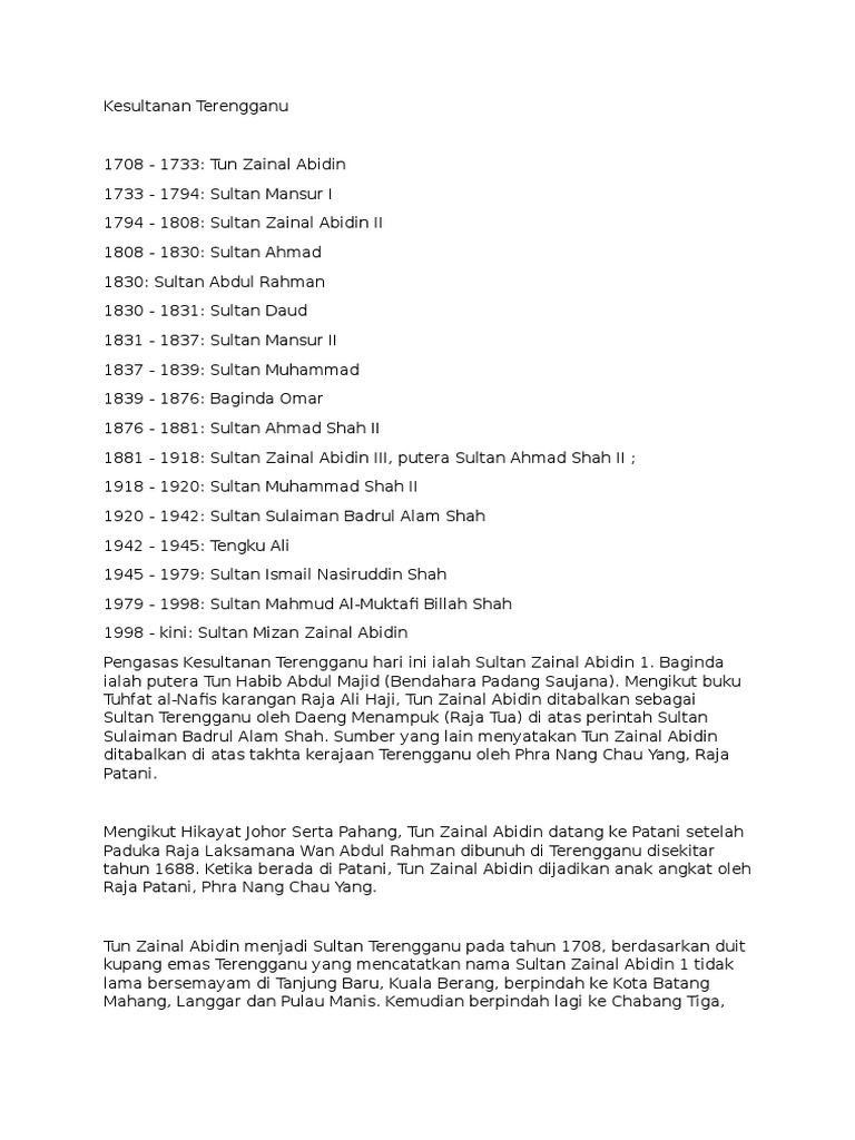 Pada tahun 1911, sultan zainal abidin iii mengeluarkan perlembagaan pertama terengganu. Succeeding on the death of his father sultan ahmad, under his reign terengganu. Biografi sultan yang adil dan alim. Succeeding on the death of his father sultan ahmad. Faculties in universiti sultan zainal abidin.